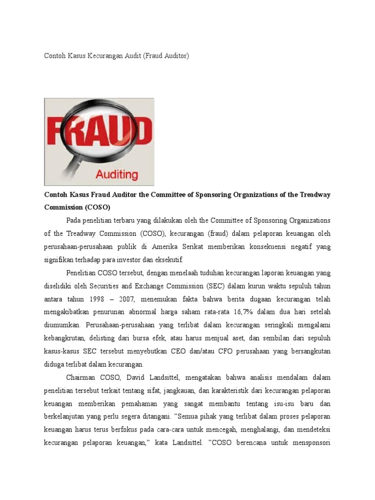 Contoh Kasus Fraud Auditor The Committee Of Sponsoring Organizations Of The Treadway Commission Pdf