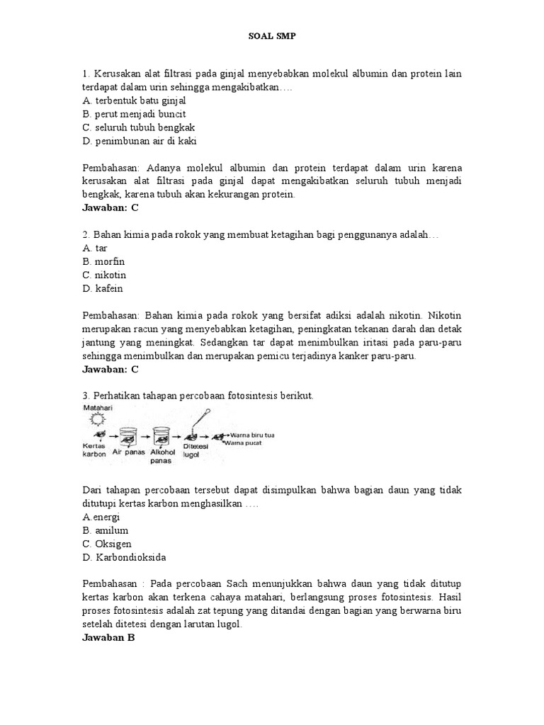 Quiz Ipasoal 1 Kerusakan Alat Filtrasi Pada Ginjal Menyebabkan Molekul Albumin Dan Protein Lain Terdapat Dalam Urin Sehingga