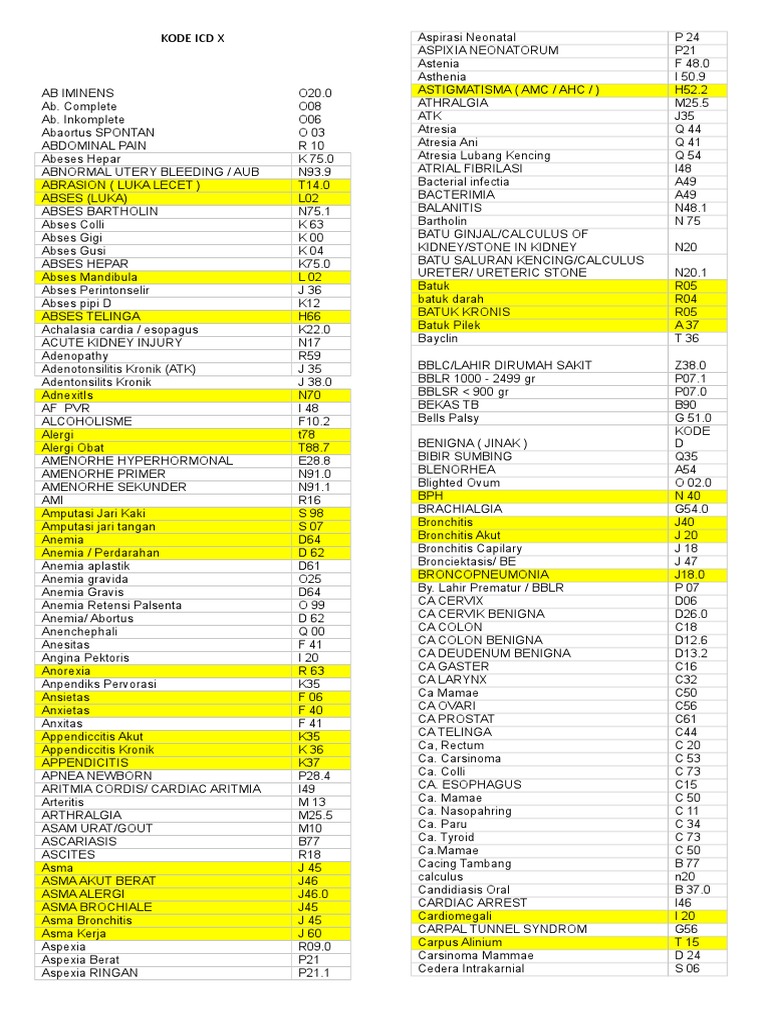 Daftar Kode Icd 10 Penyakit Tersering Pdf