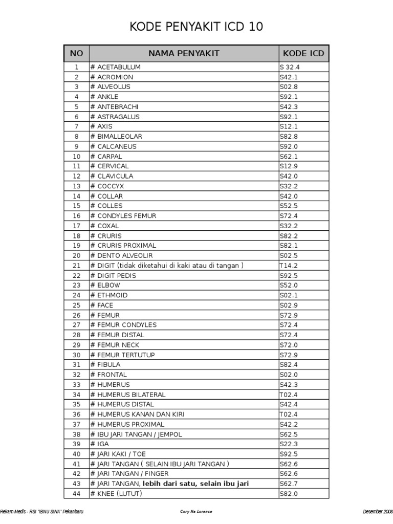 Kode Icd 10 Lengkap Diagnosis A - Z Terupdate Dan Terbaru