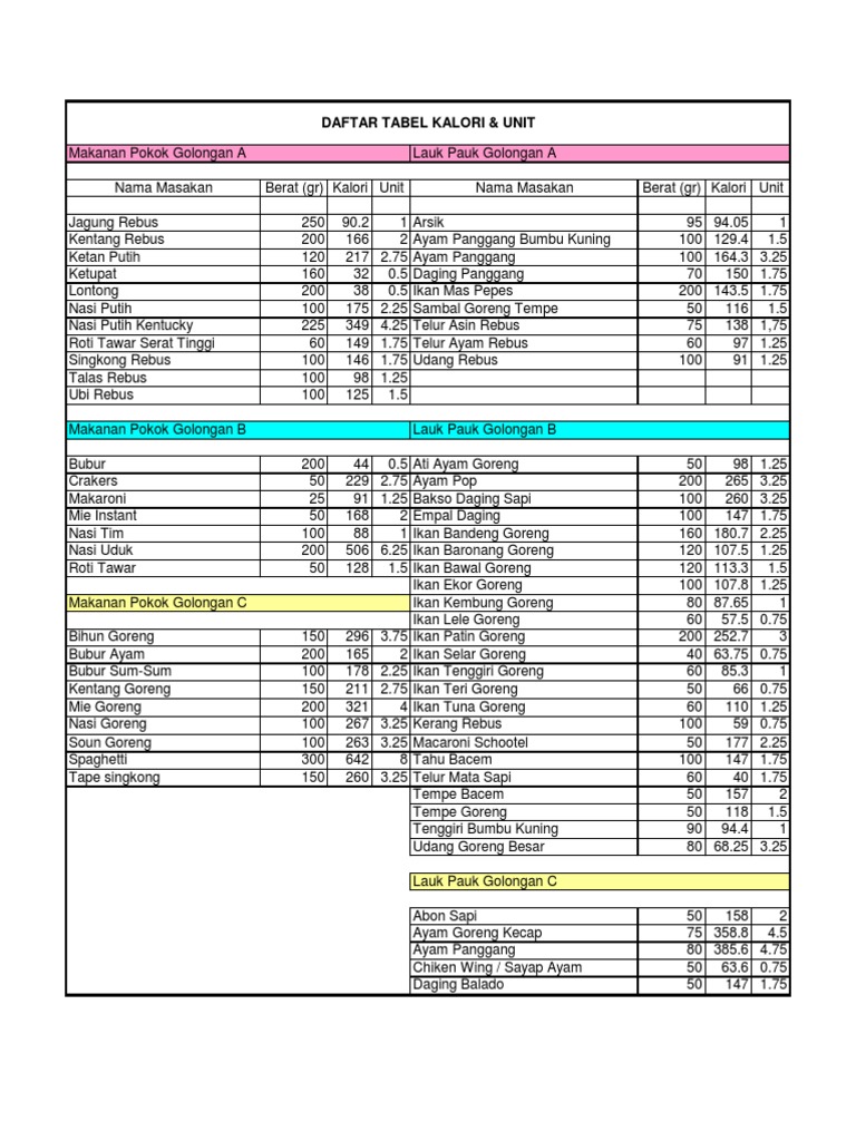 Tabel Kalori Pdf