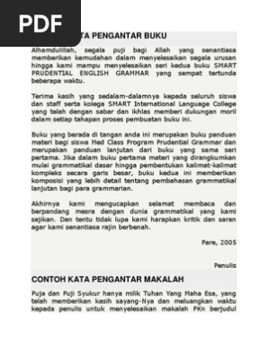 Kata pengantar biasanya diletakan di bagian depan. Setelah mengetahui apa itu kata pengantar, waktunya kamu untuk paham lebih jauh tentang strukturnya melalui contoh kata pengantar untuk makalah berikut. Seorang penulis bisa saja menulis sendiri kata pengantarnya biasanya mereka menjelaskan bagaimana dan mengapa karya tulis itu mereka buat.