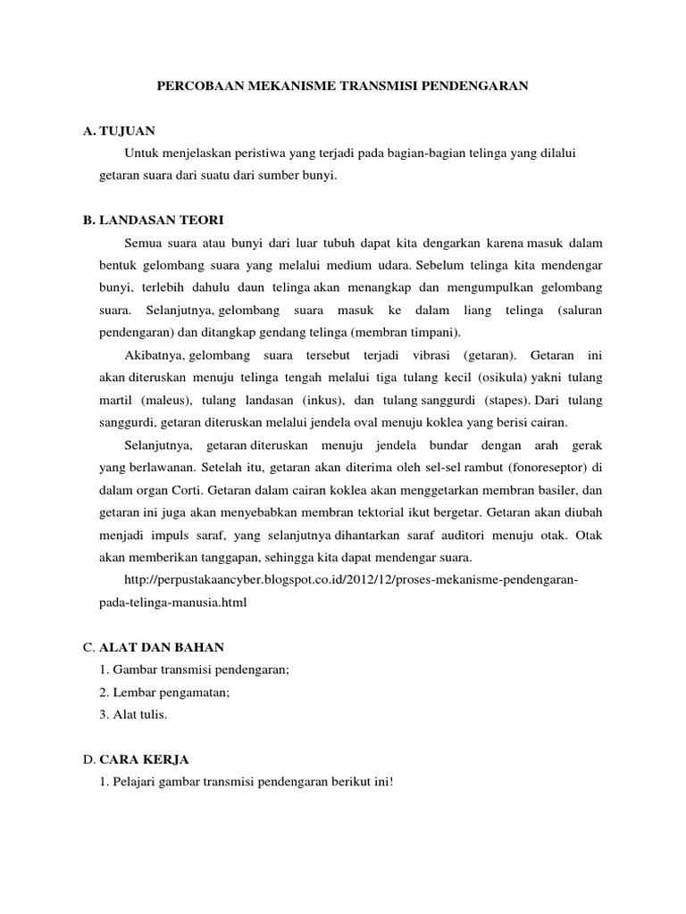 Doc Percobaan Mekanisme Transmisi Pendengaran Kurnadiansah Kong - Academiaedu