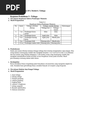 Praktikum Ipa Modul 6 Struktur Dan Fungsi Telinga