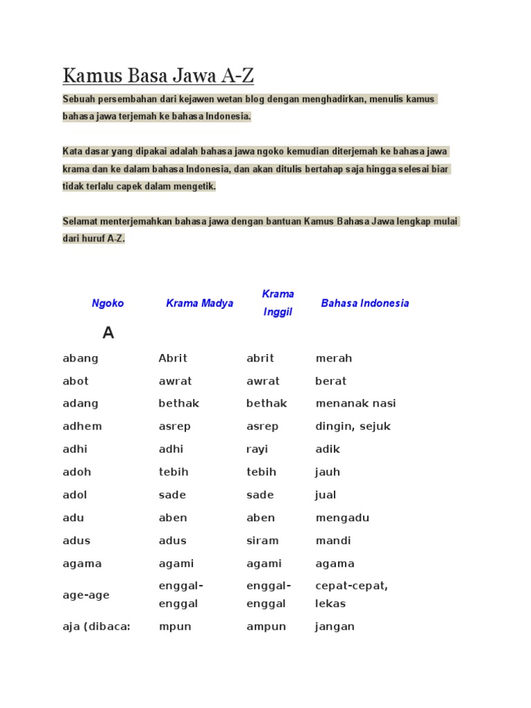 Kamus bahasa jawa banyumasan indonesia terbitan kedua (2015).pdf. Download bahasa krama inggil apk and all version history for android. Subscriptions can be cancelled at any time before the renewal.