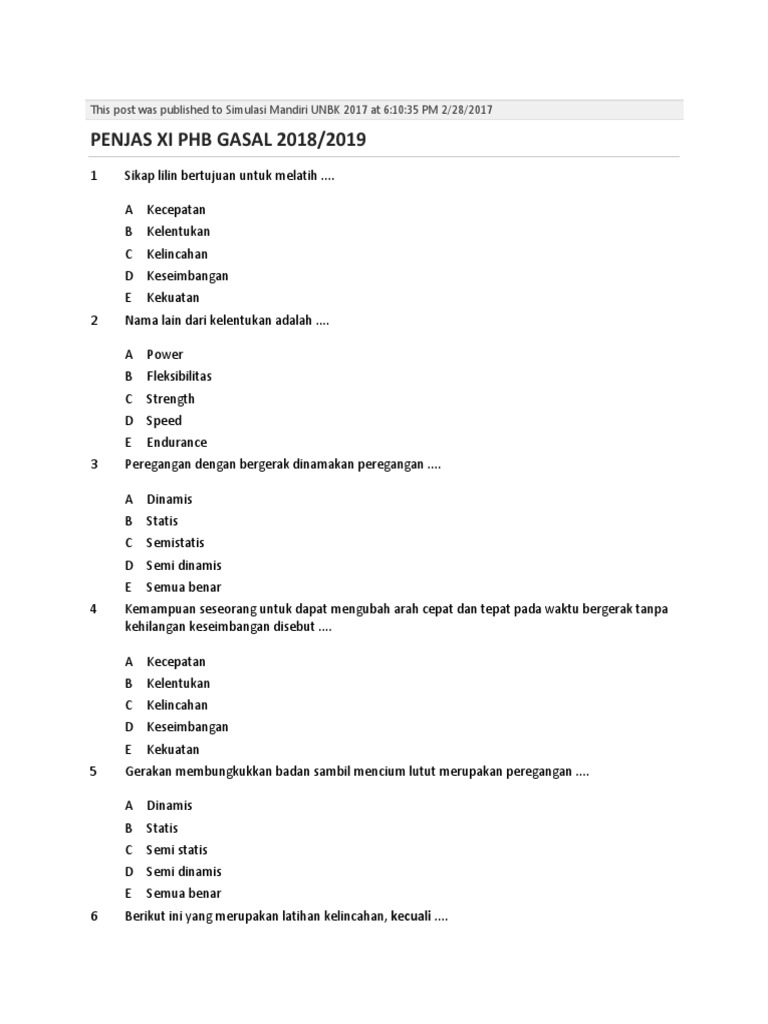 Soal Kebugaran Jasmani Pdf