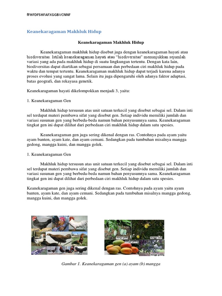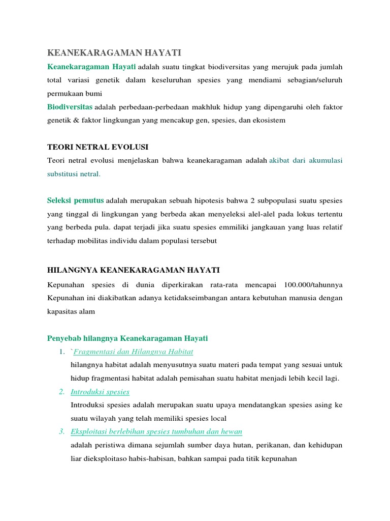 Pengertian keanekaragaman hayati keanekaragaman hayati adalah keanekaragaman makhluk hidup yangmenunjukkan keseluruhan variasi gen, spesies dan ekosistem di suatu daerah. Pengertian keanekaragaman hayati keanekaragaman hayati merupakan pernyataan mengenai berbagai macam (variasi) bentuk, penampilan, jumlah, dan sifat yang terdapat pada berbagai tingkatan makhluk hidup. Kegiatan yang dapat menyebabkan hilangnya keanekaragaman hayati adalah.