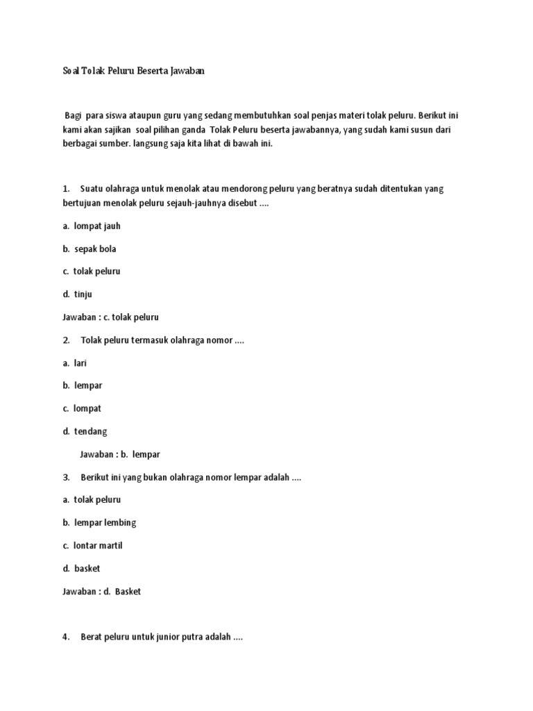 Soal Tolak Peluru Beserta Jawaban Pdf