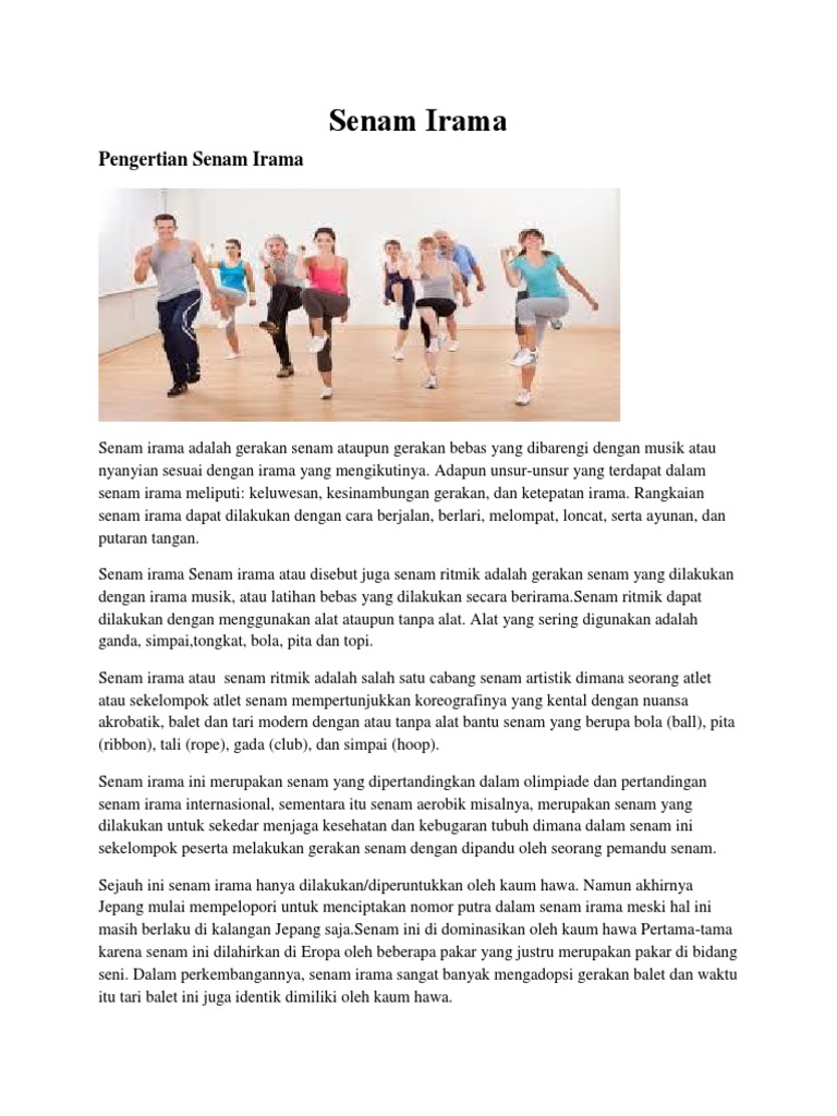 Gerakan Senam Irama - Pengertian Unsur Aliran Manfaat Dan Alat