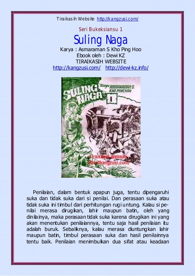 Kho ping hoo kangzusi com. Keseluruhan koleksi ebook kho ping hoo ini saya kumpulkan dari berbagai sumber, banyak sekali blog dan website yang menyediakannya, diantaranya kangzusi/tirai kasih sebagai sumber utama dan pioneer jagad pustaka ebook indonesia, dan website² lain seperti blog dunia kangouw, dll. Koleksi ebook kang zusi dan dewi kz group.
