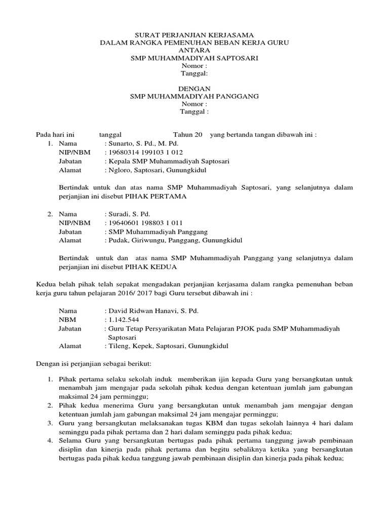 Contoh Surat Perjanjian Kontrak Pegawai Majelis Dikdasmen Pdf